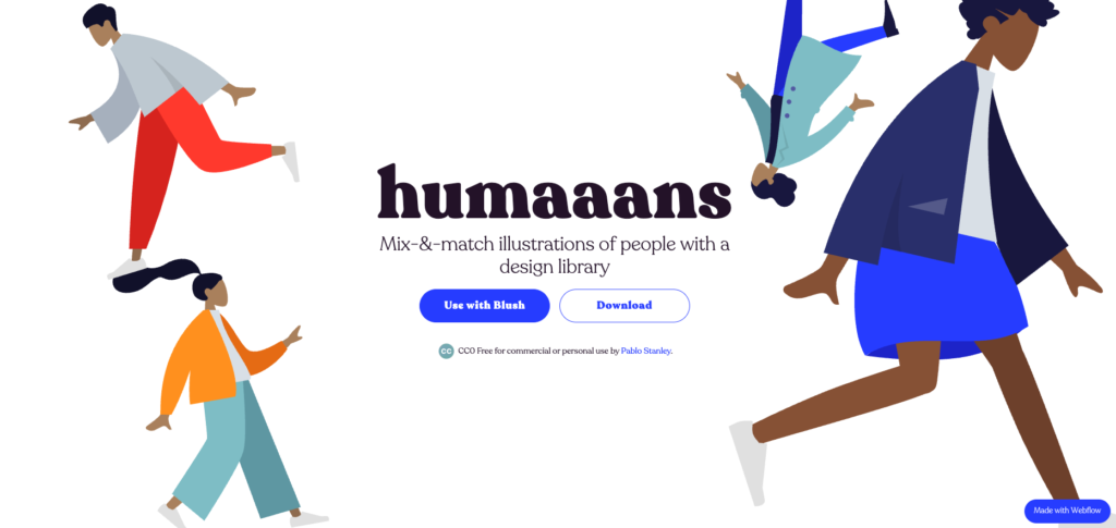 Humaaans(ヒューマーンズ)は、Pablo Stanley氏によって作成された人物イラストライブラリです。カスタマイズ性の高さが特徴で、ポーズ、服装、髪型、肌の色などを自由に組み合わせて独自のキャラクターを作成できます。