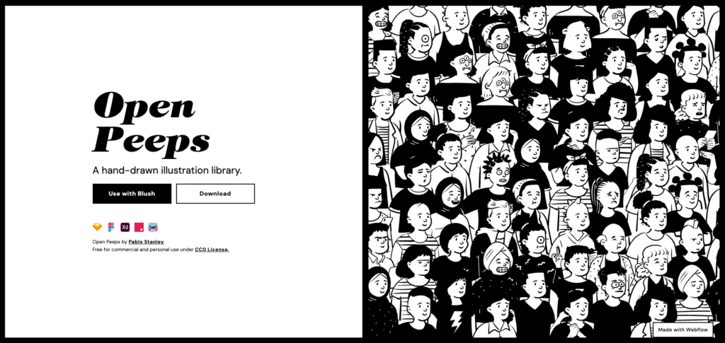 - Open Peeps:手描き風の温かみのあるキャラクター