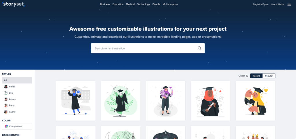 もう一つの革新的な機能は、イラストのカスタマイズです。サイト上で人物の肌の色、髪型、服装、アクセサリーなどを変更できるコレクションもあります。これにより、より多様性を表現したり、ブランドのイメージに合わせたカスタマイズが可能です。