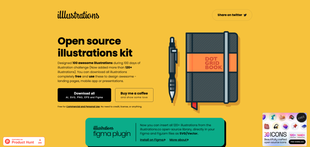 Illustrations.coは、MIT Licenseに準じたオープンソースライセンスで提供されています。個人・商用問わず自由に使用でき、改変も可能です。クレジット表記は必須ではありませんが、推奨されています。