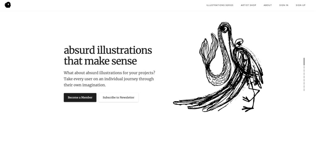 Absurd Designは、その名の通り「不条理」で「奇抜」なイラストを提供するユニークなサイトです。超現実的で遊び心のあるデザインが特徴で、一般的なフリー素材サイトとは一線を画す個性的なビジュアルを求める方に最適です。